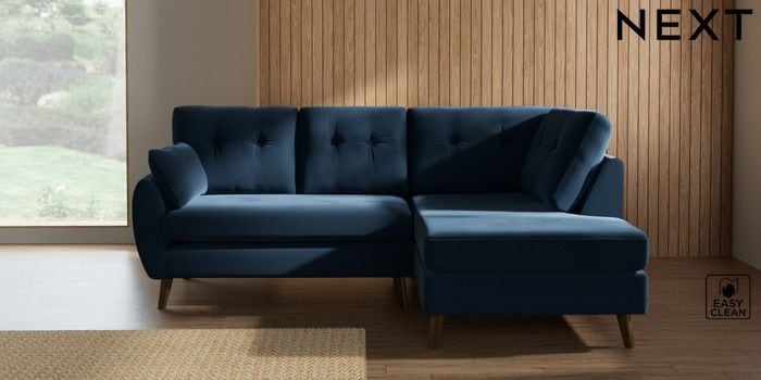 7.3.1 Buy Wilson Buttoned Back Medium Corner Chaise - Right Hand Plush Velvet Easy Clean Airforce Blue Retro Tapered - Mid from the Seasons online shop Click here to use our website with more accessibility support, for example screen readers