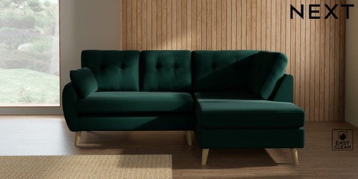7.3.1 Buy Wilson Buttoned Back Medium Corner Chaise - Right Hand Plush Velvet Easy Clean Bottle Green Retro Tapered - Light from the Seasons online shop Click here to use our website with more accessibility support, for example screen readers