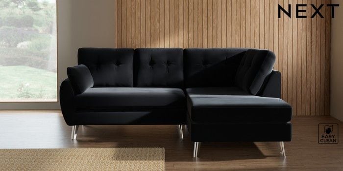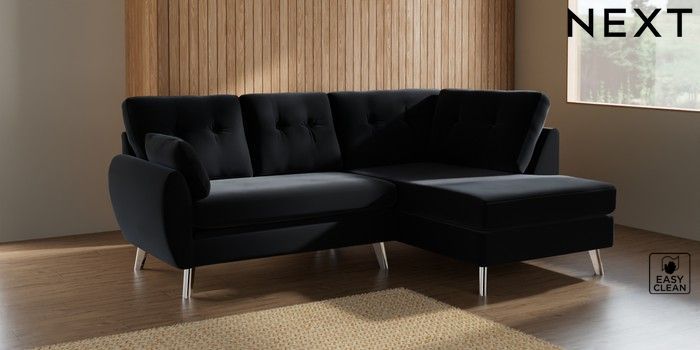 7.3.1 Buy Wilson Buttoned Back Medium Corner Chaise - Right Hand Plush Velvet Easy Clean Charcoal Grey Metal Tapered - Chrome from the Seasons online shop Click here to use our website with more accessibility support, for example screen readers
