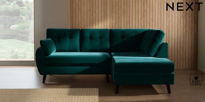 7.3.1 Buy Wilson Buttoned Back Medium Corner Chaise - Right Hand Plush Velvet Easy Clean Juniper Green Retro Tapered - Dark from the Seasons online shop Click here to use our website with more accessibility support, for example screen readers