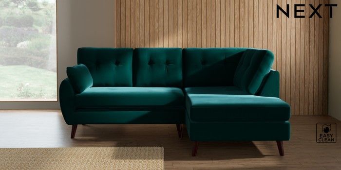 7.3.1 Buy Wilson Buttoned Back Medium Corner Chaise - Right Hand Plush Velvet Easy Clean Juniper Green Retro Tapered - Dark Brown from the Seasons online shop Click here to use our website with more accessibility support, for example screen readers