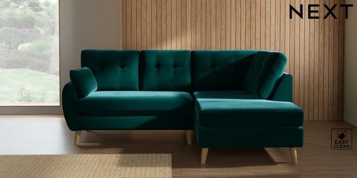 7.3.1 Buy Wilson Buttoned Back Medium Corner Chaise - Right Hand Plush Velvet Easy Clean Juniper Green Retro Tapered - Light from the Seasons online shop Click here to use our website with more accessibility support, for example screen readers