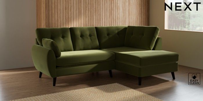 7.3.1 Buy Wilson Buttoned Back Medium Corner Chaise - Right Hand Plush Velvet Easy Clean Mid Olive Green Retro Tapered - Dark from the Seasons online shop Click here to use our website with more accessibility support, for example screen readers