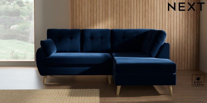 7.3.1 Buy Wilson Buttoned Back Medium Corner Chaise - Right Hand Plush Velvet Easy Clean Navy Blue Retro Tapered - Light from the Seasons online shop Click here to use our website with more accessibility support, for example screen readers