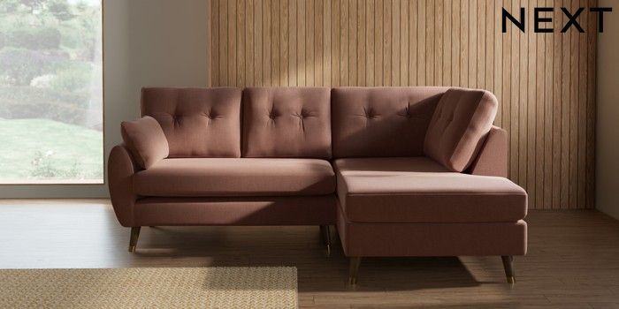 7.3.1 Buy Wilson Buttoned Back Medium Corner Chaise - Right Hand Relaxed Linen Look Light Rust Brown Low Retro Tapered Metal Cap - Mid from the Seasons online shop Click here to use our website with more accessibility support, for example screen readers