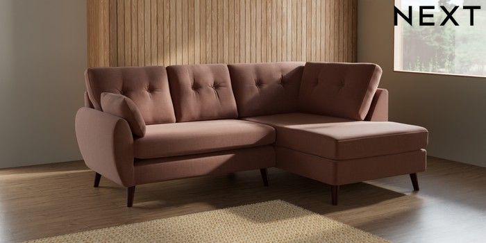 7.3.1 Buy Wilson Buttoned Back Medium Corner Chaise - Right Hand Relaxed Linen Look Light Rust Brown Retro Tapered - Dark Brown from the Seasons online shop Click here to use our website with more accessibility support, for example screen readers