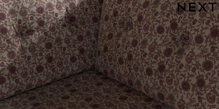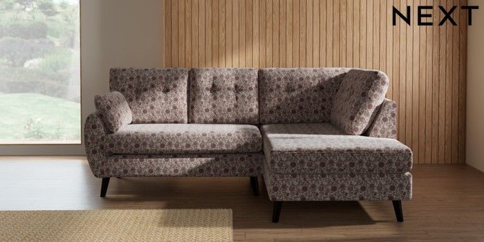 7.3.1 Buy Wilson Buttoned Back Medium Corner Chaise - Right Hand Relaxed Linen Look Print Woodblock Floral Print Pink Retro Tapered - Dark from the Seasons online shop
