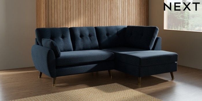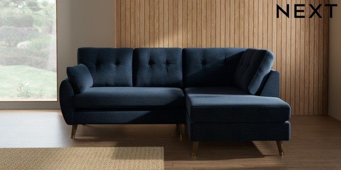 7.3.1 Buy Wilson Buttoned Back Medium Corner Chaise - Right Hand Ripple Chenille Dark Blue Low Retro Tapered Metal Cap - Mid from the Seasons online shop Click here to use our website with more accessibility support, for example screen readers