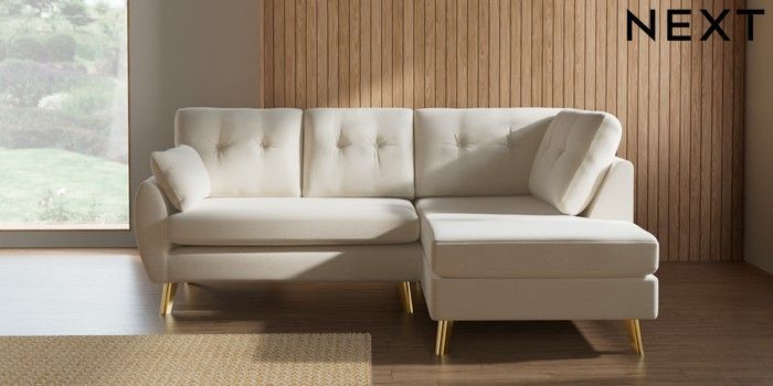 7.3.1 Buy Wilson Buttoned Back Medium Corner Chaise - Right Hand Ripple Chenille Oyster Metal Tapered - Gold from the Seasons online shop Click here to use our website with more accessibility support, for example screen readers