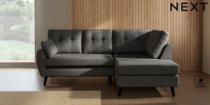 7.3.1 Buy Wilson Buttoned Back Medium Corner Chaise - Right Hand Tweedy Blend Easy Clean Dark Grey Retro Tapered - Dark from the Seasons online shop Click here to use our website with more accessibility support, for example screen readers