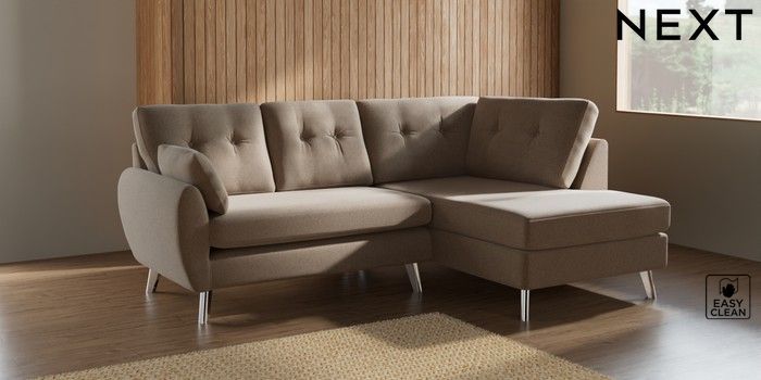 7.3.1 Buy Wilson Buttoned Back Medium Corner Chaise - Right Hand Tweedy Blend Easy Clean Light Dove Natural Metal Tapered - Chrome from the Seasons online shop Click here to use our website with more accessibility support, for example screen readers