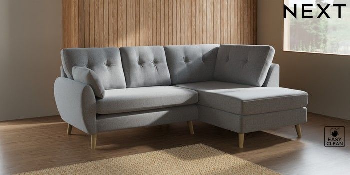 7.2.10 Buy Wilson Buttoned Back Medium Corner Chaise - Right Hand Tweedy Blend Easy Clean Light Silver Grey Retro Tapered - Light from the Seasons online shop Click here to use our website with more accessibility support, for example screen readers