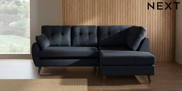 7.3.1 Buy Wilson Buttoned Back Medium Corner Chaise - Right Hand Tweedy Chenille Navy Blue Low Retro Tapered Metal Cap - Mid from the Seasons online shop Click here to use our website with more accessibility support, for example screen readers