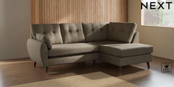 7.3.1 Buy Wilson Buttoned Back Medium Corner Chaise - Right Hand Woven Chenille Easy Clean Mid Natural Low Retro Tapered Metal Cap - Mid from the Seasons online shop Click here to use our website with more accessibility support, for example screen readers