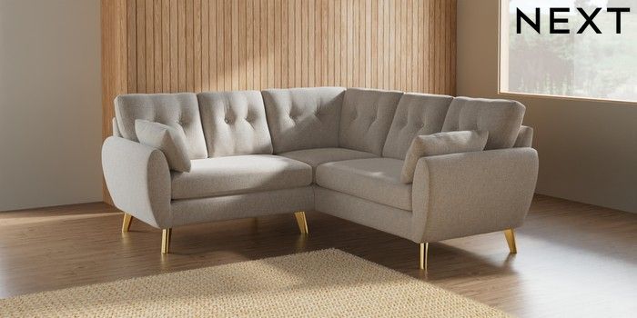 7.3.1 Buy Wilson Buttoned Back Small Corner Sofa - Universal Chunky Marl Oyster Metal Tapered - Gold from the Seasons online shop Click here to use our website with more accessibility support, for example screen readers