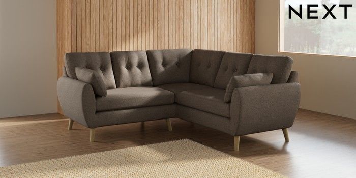 7.2.10 Buy Wilson Buttoned Back Small Corner Sofa - Universal Chunky Weave Dark Natural Retro Tapered - Light from the Seasons online shop Click here to use our website with more accessibility support, for example screen readers