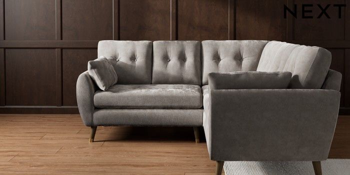 7.3.1 Buy Wilson Buttoned Back Small Corner Sofa - Universal Distressed Velour French Grey Low Retro Tapered Metal Cap - Mid from the Seasons online shop Click here to use our website with more accessibility support, for example screen readers