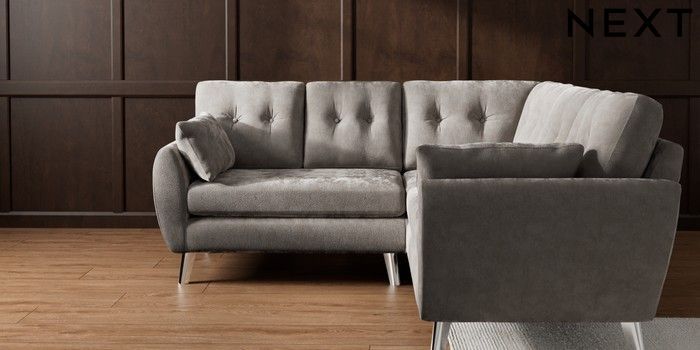 7.3.1 Buy Wilson Buttoned Back Small Corner Sofa - Universal Distressed Velour French Grey Metal Tapered - Chrome from the Seasons online shop Click here to use our website with more accessibility support, for example screen readers