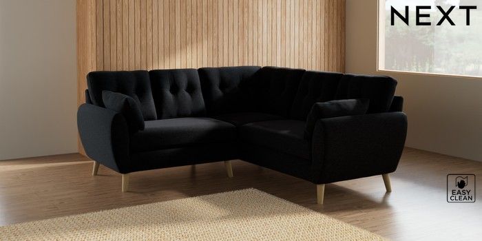 7.2.10 Buy Wilson Buttoned Back Small Corner Sofa - Universal Fine Chenille Easy Clean Black Retro Tapered - Light from the Seasons online shop Click here to use our website with more accessibility support, for example screen readers