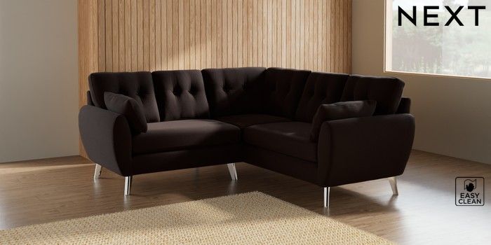 7.3.1 Buy Wilson Buttoned Back Small Corner Sofa - Universal Fine Chenille Easy Clean Chocolate Brown Metal Tapered - Chrome from the Seasons online shop Click here to use our website with more accessibility support, for example screen readers