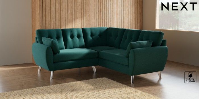 7.3.1 Buy Wilson Buttoned Back Small Corner Sofa - Universal Fine Chenille Easy Clean Dark Juniper Green Metal Tapered - Chrome from the Seasons online shop Click here to use our website with more accessibility support, for example screen readers