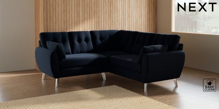 7.3.1 Buy Wilson Buttoned Back Small Corner Sofa - Universal Fine Chenille Easy Clean Dark Navy Blue Metal Tapered - Chrome from the Seasons online shop Click here to use our website with more accessibility support, for example screen readers