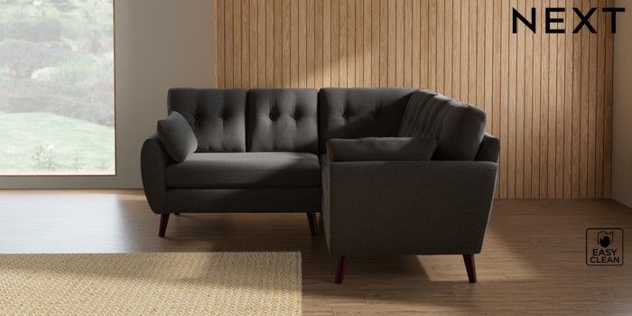 7.3.1 Buy Wilson Buttoned Back Small Corner Sofa - Universal Fine Chenille Easy Clean Dark Smoke Grey Retro Tapered - Dark Brown from the Seasons online shop Click here to use our website with more accessibility support, for example screen readers
