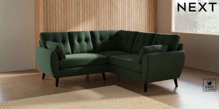 7.3.1 Buy Wilson Buttoned Back Small Corner Sofa - Universal Fine Chenille Easy Clean Mid Khaki Green Retro Tapered - Dark from the Seasons online shop Click here to use our website with more accessibility support, for example screen readers
