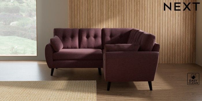 7.3.1 Buy Wilson Buttoned Back Small Corner Sofa - Universal Fine Chenille Easy Clean Mid Mulberry Purple Retro Tapered - Dark from the Seasons online shop Click here to use our website with more accessibility support, for example screen readers