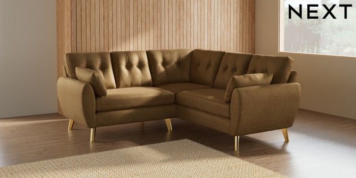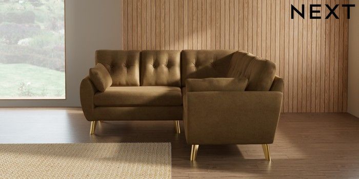 7.3.1 Buy Wilson Buttoned Back Small Corner Sofa - Universal Luxe Chenille Honey Yellow Metal Tapered - Gold from the Seasons online shop Click here to use our website with more accessibility support, for example screen readers