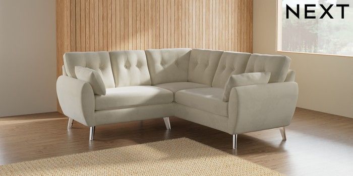 7.2.10 Buy Wilson Buttoned Back Small Corner Sofa - Universal Luxe Chenille Oyster Metal Tapered - Chrome from the Seasons online shop Click here to use our website with more accessibility support, for example screen readers