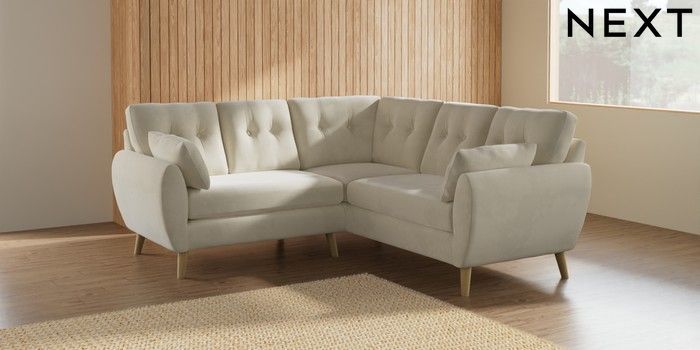 7.2.10 Buy Wilson Buttoned Back Small Corner Sofa - Universal Luxe Chenille Oyster Retro Tapered - Light from the Seasons online shop Click here to use our website with more accessibility support, for example screen readers
