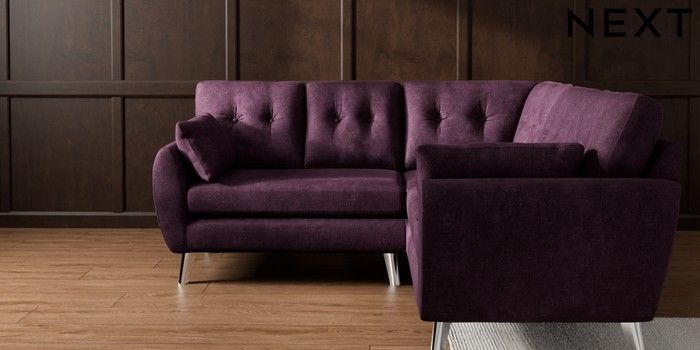 7.3.1 Buy Wilson Buttoned Back Small Corner Sofa - Universal Plush Chenille Dark Plum Purple Metal Tapered - Chrome from the Seasons online shop Click here to use our website with more accessibility support, for example screen readers