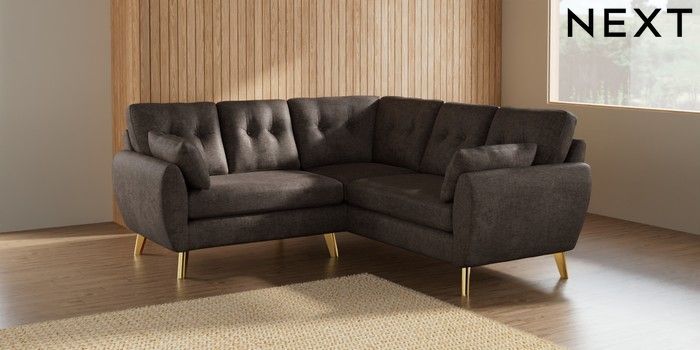 7.3.1 Buy Wilson Buttoned Back Small Corner Sofa - Universal Plush Chenille Mink Brown Metal Tapered - Gold from the Seasons online shop Click here to use our website with more accessibility support, for example screen readers