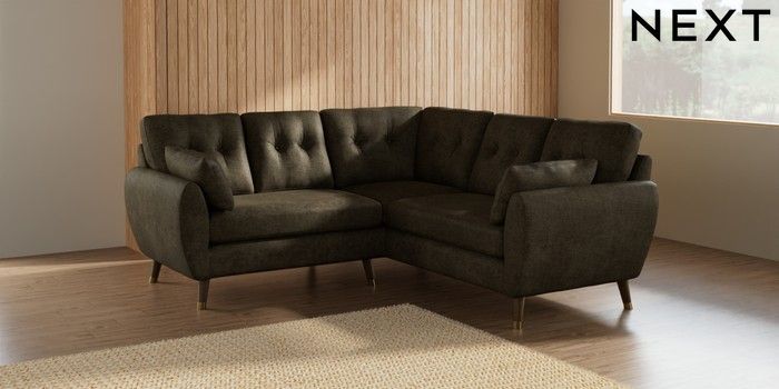 7.3.1 Buy Wilson Buttoned Back Small Corner Sofa - Universal Plush Chenille Moss Green Low Retro Tapered Metal Cap - Mid from the Seasons online shop Click here to use our website with more accessibility support, for example screen readers