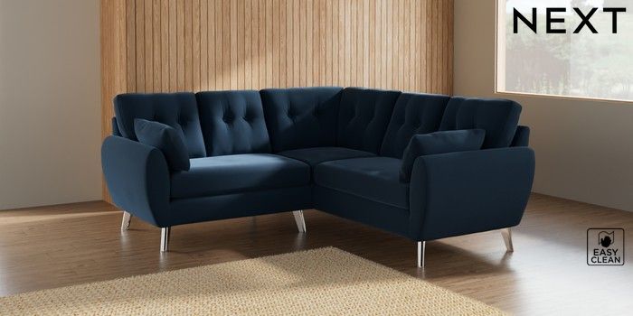7.3.1 Buy Wilson Buttoned Back Small Corner Sofa - Universal Plush Velvet Easy Clean Airforce Blue Metal Tapered - Chrome from the Seasons online shop Click here to use our website with more accessibility support, for example screen readers