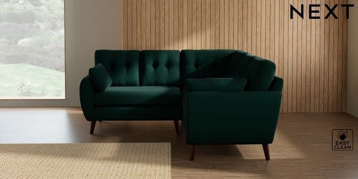 7.3.1 Buy Wilson Buttoned Back Small Corner Sofa - Universal Plush Velvet Easy Clean Bottle Green Retro Tapered - Dark Brown from the Seasons online shop Click here to use our website with more accessibility support, for example screen readers