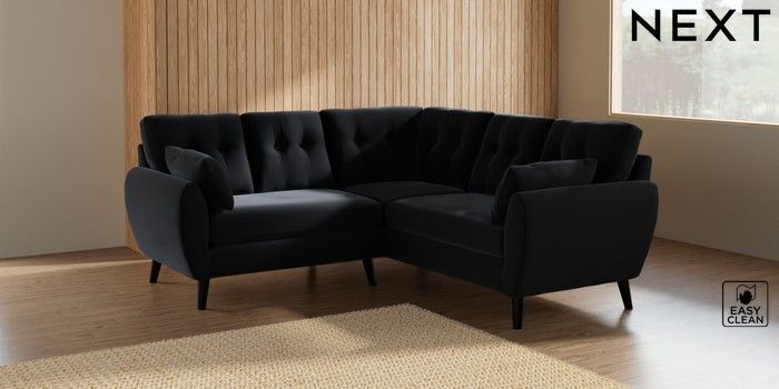 7.3.1 Buy Wilson Buttoned Back Small Corner Sofa - Universal Plush Velvet Easy Clean Charcoal Grey Retro Tapered - Dark from the Seasons online shop Click here to use our website with more accessibility support, for example screen readers