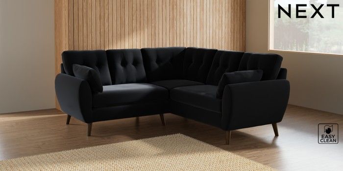 7.3.1 Buy Wilson Buttoned Back Small Corner Sofa - Universal Plush Velvet Easy Clean Charcoal Grey Retro Tapered - Mid from the Seasons online shop Click here to use our website with more accessibility support, for example screen readers