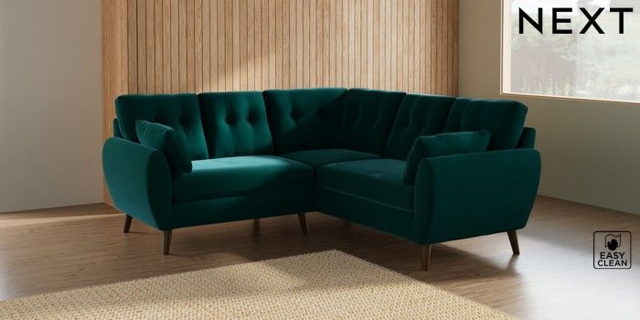 7.3.1 Buy Wilson Buttoned Back Small Corner Sofa - Universal Plush Velvet Easy Clean Juniper Green Retro Tapered - Mid from the Seasons online shop Click here to use our website with more accessibility support, for example screen readers
