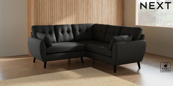 7.3.1 Buy Wilson Buttoned Back Small Corner Sofa - Universal Tweedy Blend Easy Clean Charcoal Grey Retro Tapered - Dark from the Seasons online shop Click here to use our website with more accessibility support, for example screen readers
