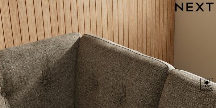 7.3.1 Buy Wilson Buttoned Back Small Corner Sofa - Universal Woven Chenille Easy Clean Mid Natural Metal Tapered - Gold from the Seasons online shop Click here to use our website with more accessibility support, for example screen readers