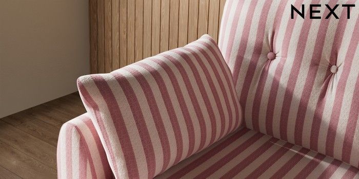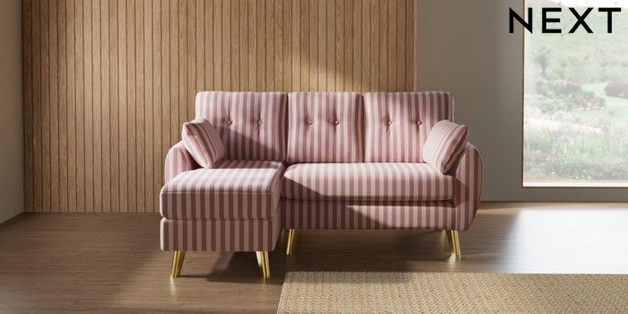 7.3.1 Buy Wilson Buttoned Back Small Sofa Chaise - Left Hand Bold Chenille Stripe Dark Pink Metal Tapered - Gold from the Seasons online shop Click here to use our website with more accessibility support, for example screen readers