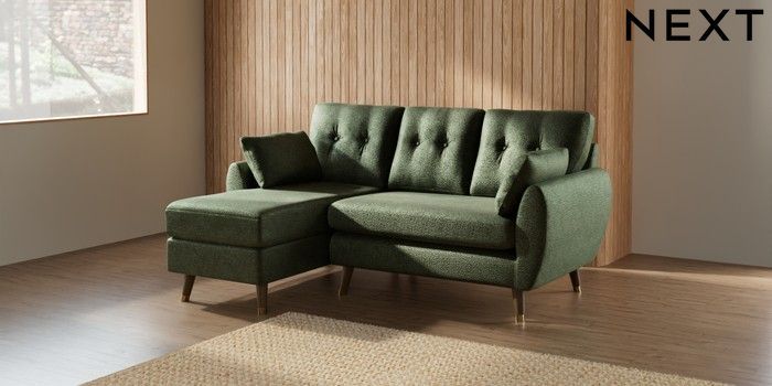 7.3.1 Buy Wilson Buttoned Back Small Sofa Chaise - Left Hand Boucle Chenille Dark Moss Green Low Retro Tapered Metal Cap - Mid from the Seasons online shop Click here to use our website with more accessibility support, for example screen readers