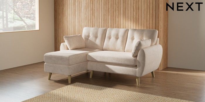 7.2.10 Buy Wilson Buttoned Back Small Sofa Chaise - Left Hand Boucle Chenille Oyster Retro Tapered - Light from the Seasons online shop Click here to use our website with more accessibility support, for example screen readers