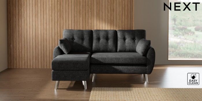 7.3.1 Buy Wilson Buttoned Back Small Sofa Chaise - Left Hand Boucle Weave Easy Clean Charcoal Grey Metal Tapered - Chrome from the Seasons online shop Click here to use our website with more accessibility support, for example screen readers