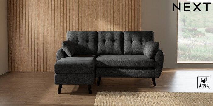 7.3.1 Buy Wilson Buttoned Back Small Sofa Chaise - Left Hand Boucle Weave Easy Clean Charcoal Grey Retro Tapered - Dark from the Seasons online shop Click here to use our website with more accessibility support, for example screen readers