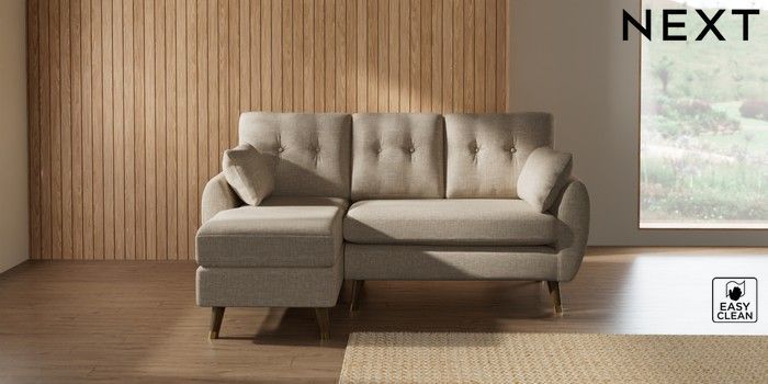 7.3.1 Buy Wilson Buttoned Back Small Sofa Chaise - Left Hand Boucle Weave Easy Clean Dark Natural Low Retro Tapered Metal Cap - Mid from the Seasons online shop Click here to use our website with more accessibility support, for example screen readers
