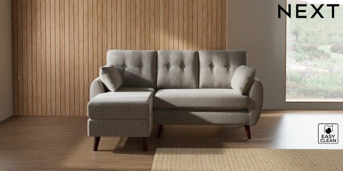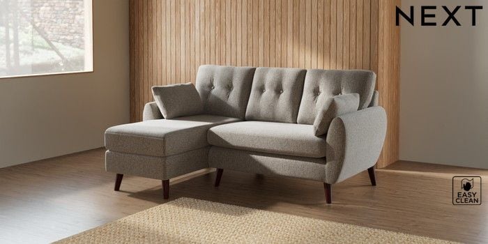 7.3.1 Buy Wilson Buttoned Back Small Sofa Chaise - Left Hand Chunky Boucle Easy Clean Dove Retro Tapered - Dark Brown from the Seasons online shop Click here to use our website with more accessibility support, for example screen readers