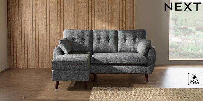 7.3.1 Buy Wilson Buttoned Back Small Sofa Chaise - Left Hand Chunky Boucle Easy Clean Mid Grey Retro Tapered - Dark Brown from the Seasons online shop Click here to use our website with more accessibility support, for example screen readers